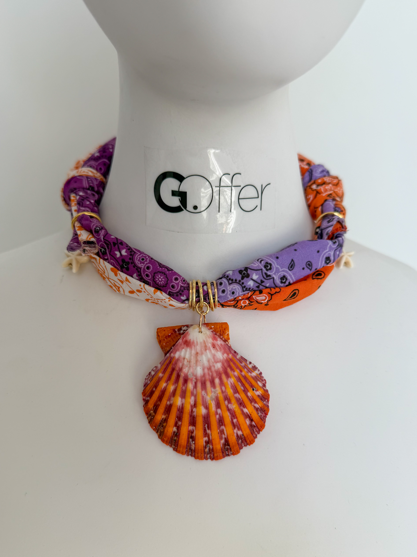 Uma peça que une o toque artesanal da bandana 100% algodão com a beleza singular da concha natural.