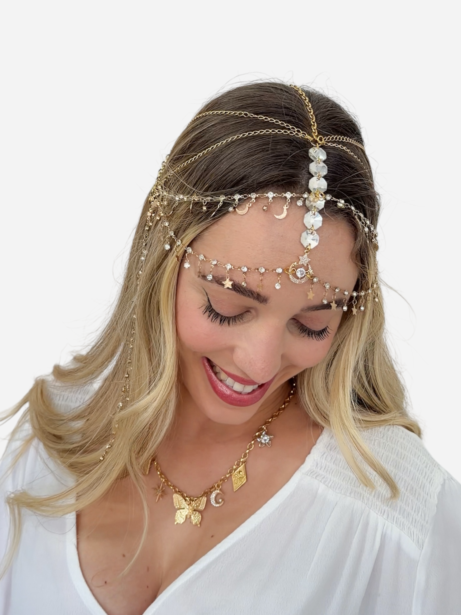 Brilhe como nunca com a nossa Headpiece Estrela Dourada, o acessório perfeito para completar seu look de Ano Novo, festas de fim de ano, casamentos, festivais e celebrações especiais.