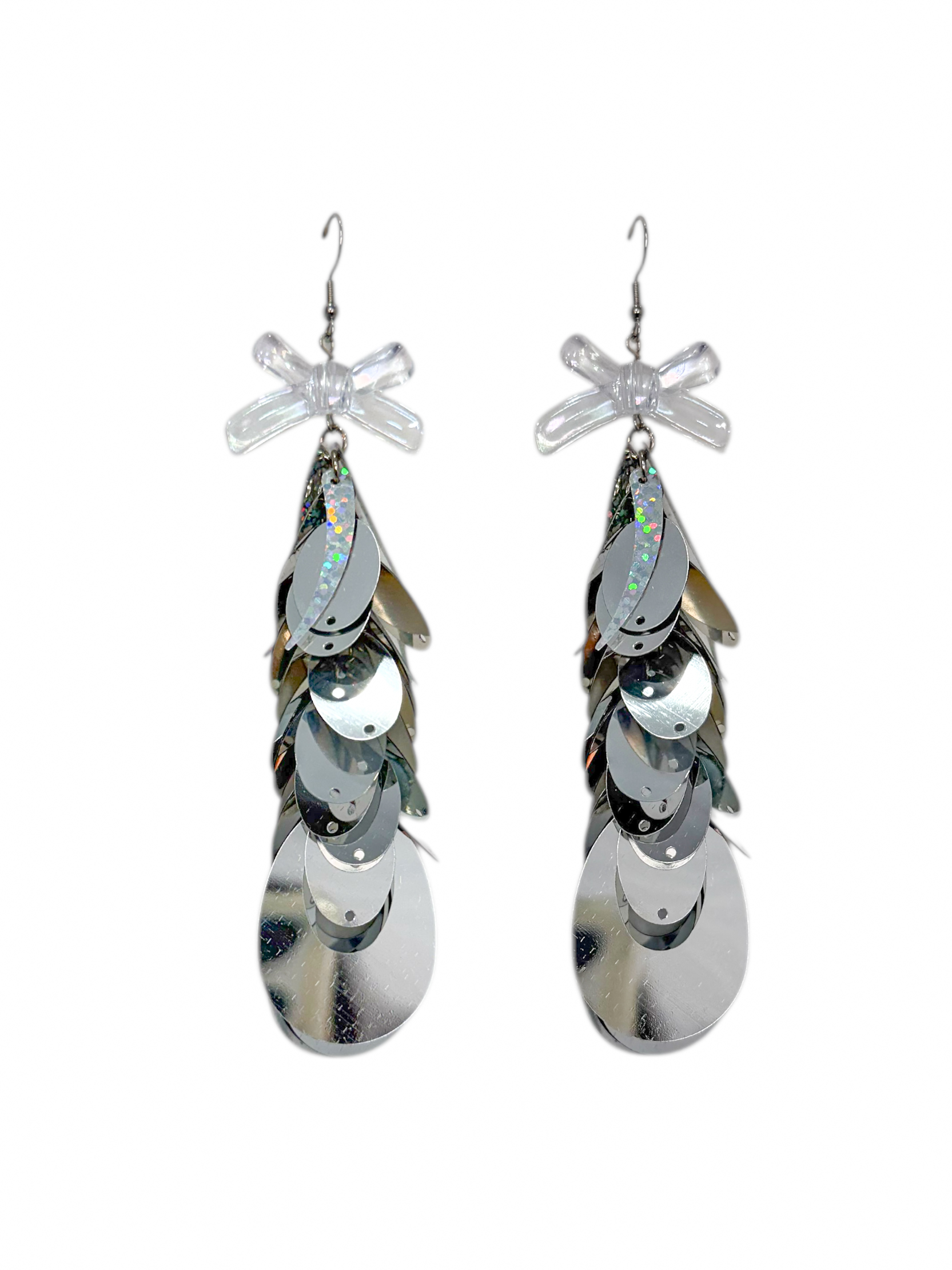 Com base de anzol e detalhes em paetê prata, essa peça foi feita para quem quer brilhar muito no réveillon, festas ou eventos especiais.